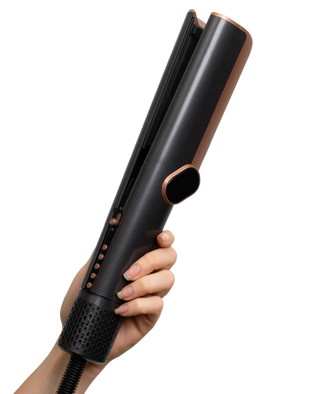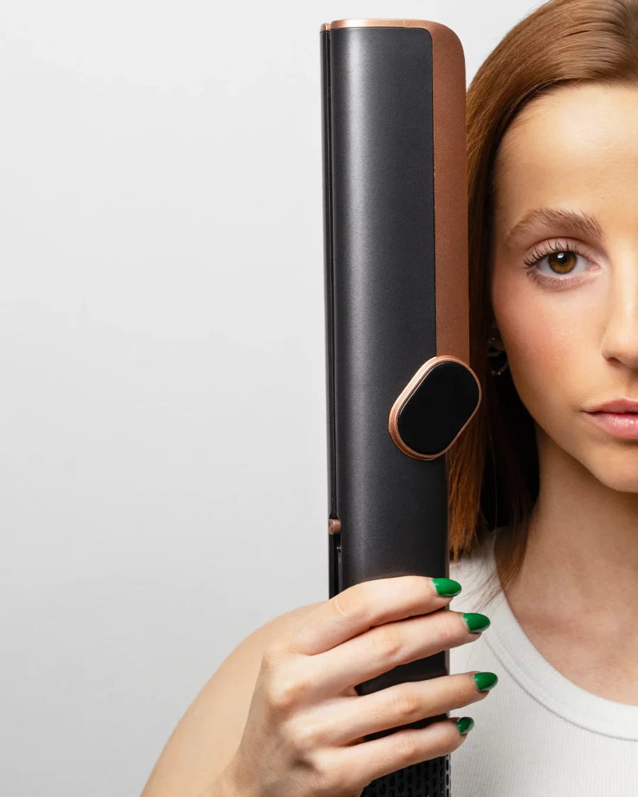 La Alisadora AIRFLOW™ combina secado y alisado en un solo paso gracias a su avanzada tecnología de flujo de aire. Diseñada para cuidar tu cabello, elimina la necesidad de calor extremo, reduciendo el daño y dejando un acabado suave, brillante y natural